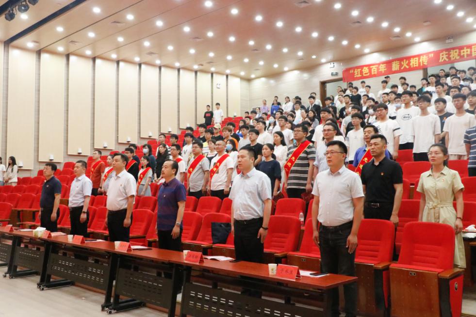 在图书馆诚信礼堂举办“红色百年 薪火相传”党史学习成果展示暨“鹤工榜样 青春盛典”颁奖典礼。学院党委书记孙斌、常务副书记杜宗才、常务副院长谷海红、副书记齐建民、副院长法冠喆、于水生出席。