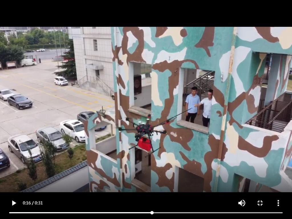 2021年立项的河南省科技攻关项目,主要是解决高层建筑发生火灾后,消防云梯无法对25米以上楼层进行人员救援的这一难点。谷海红在调研中,与合作企业——安阳全丰航空植保科技股份有限公司负责人一同观看了研制的无人机60m和120m的高空抛投、高空喊话、逃生设备传递等试验项目。