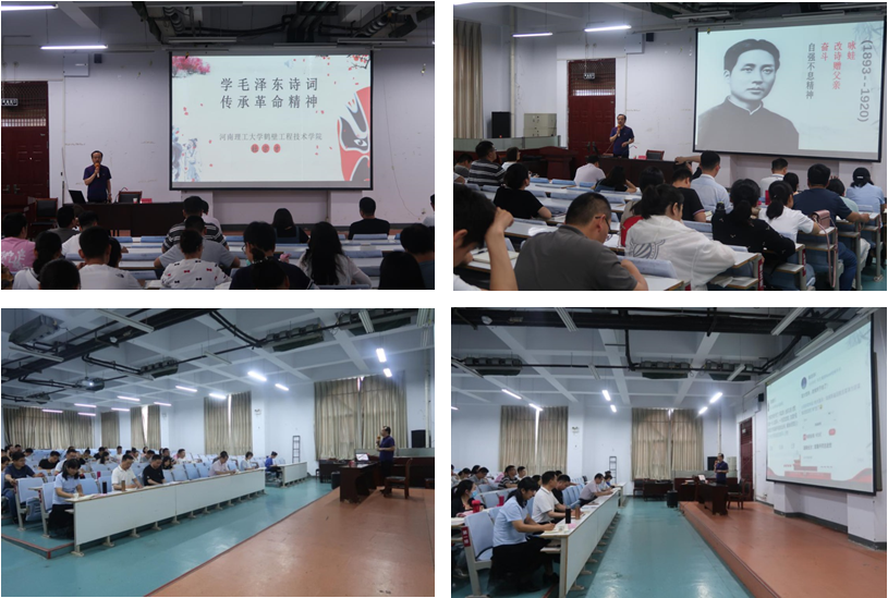 为学习贯彻党史学习教育动员大会上的重要讲话精神,弘扬爱国主义奋斗精神,激发全院教职工履职尽责、开拓进取的热情,6月15日,学院常务副书记杜宗才以“学毛泽东诗词 传承革命精神”为题为全体教职工上了一堂生动的党史专题辅导课。