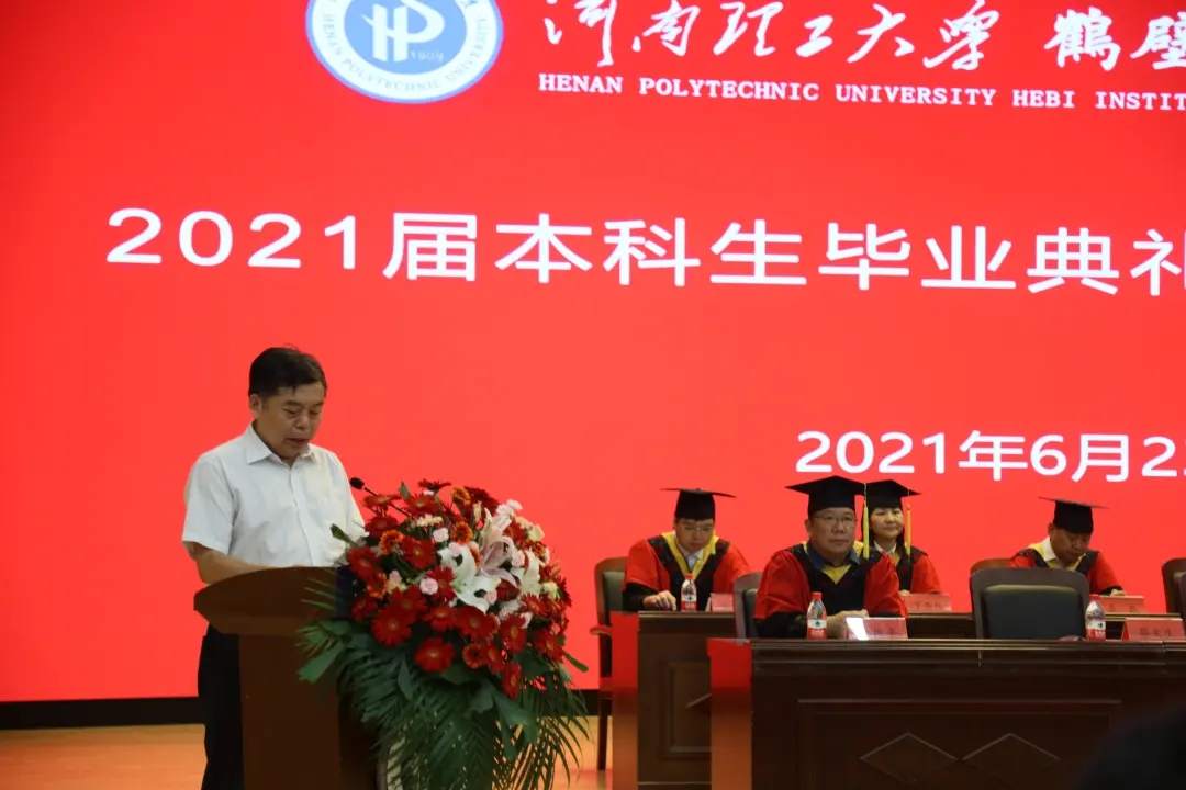 鹤壁研究院和博士工作站建设等方面取得的突出成绩给予了充分肯定和高度评价,对同学们圆满完成学业表示祝贺。他指出,同学们在鹤壁市委市政府的亲切关怀和学校老师的精心培养下,在“明德任责”校训、“好学力行”校风等学校核心价值理念的熏陶下,理想信念进一步坚定,能力本领进一步提升。他希望同学们弘扬家国之情怀,学习好党史这门必修课,传承母校的家国情怀,家国入心、情怀筑梦、立报国志,做新时代的奋斗者和建设者;勇担历史之使命,在未来的人生道路上,传递母校的价值和情怀,成就母校的光荣与梦想,迎时代潮头而立,领时代风气之先,肩负历史使命,坚定前进信心,努力成为堪当民族复兴重任的时代新人;成就创新之梦想,以与时俱进的精神、革故鼎新的勇气、坚韧不拔的定力,肩负起时代赋予的重任,用拼搏和奋斗去成就自己的创新梦想,争做国家高水平科技自立自强的助推人。