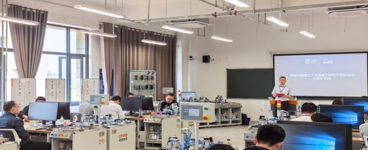 院长谷海红致欢迎词,赛教融合工作组成员李重就智能产线综合实践课程体系的三个教学问题进行了全面、系统的培训,来自省内外8个院校的30名老师齐聚一堂,充分交流,共同探讨专业建设、人才培养和实践教学体系建设,探索实现服务区域产业的金课、工程认定等专业建设的路径方法。会场气氛活跃,老师们学习认真,交流活动圆满成功!(供稿人:电子信息学院 唐明涛)