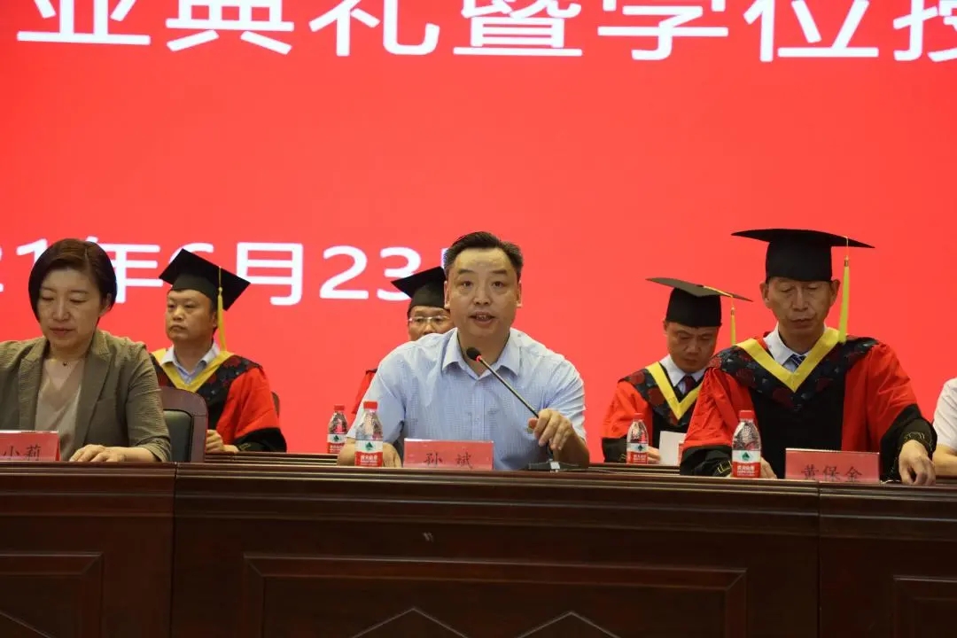 鹤壁研究院和博士工作站建设等方面取得的突出成绩给予了充分肯定和高度评价,对同学们圆满完成学业表示祝贺。他指出,同学们在鹤壁市委市政府的亲切关怀和学校老师的精心培养下,在“明德任责”校训、“好学力行”校风等学校核心价值理念的熏陶下,理想信念进一步坚定,能力本领进一步提升。他希望同学们弘扬家国之情怀,学习好党史这门必修课,传承母校的家国情怀,家国入心、情怀筑梦、立报国志,做新时代的奋斗者和建设者;勇担历史之使命,在未来的人生道路上,传递母校的价值和情怀,成就母校的光荣与梦想,迎时代潮头而立,领时代风气之先,肩负历史使命,坚定前进信心,努力成为堪当民族复兴重任的时代新人;成就创新之梦想,以与时俱进的精神、革故鼎新的勇气、坚韧不拔的定力,肩负起时代赋予的重任,用拼搏和奋斗去成就自己的创新梦想,争做国家高水平科技自立自强的助推人。